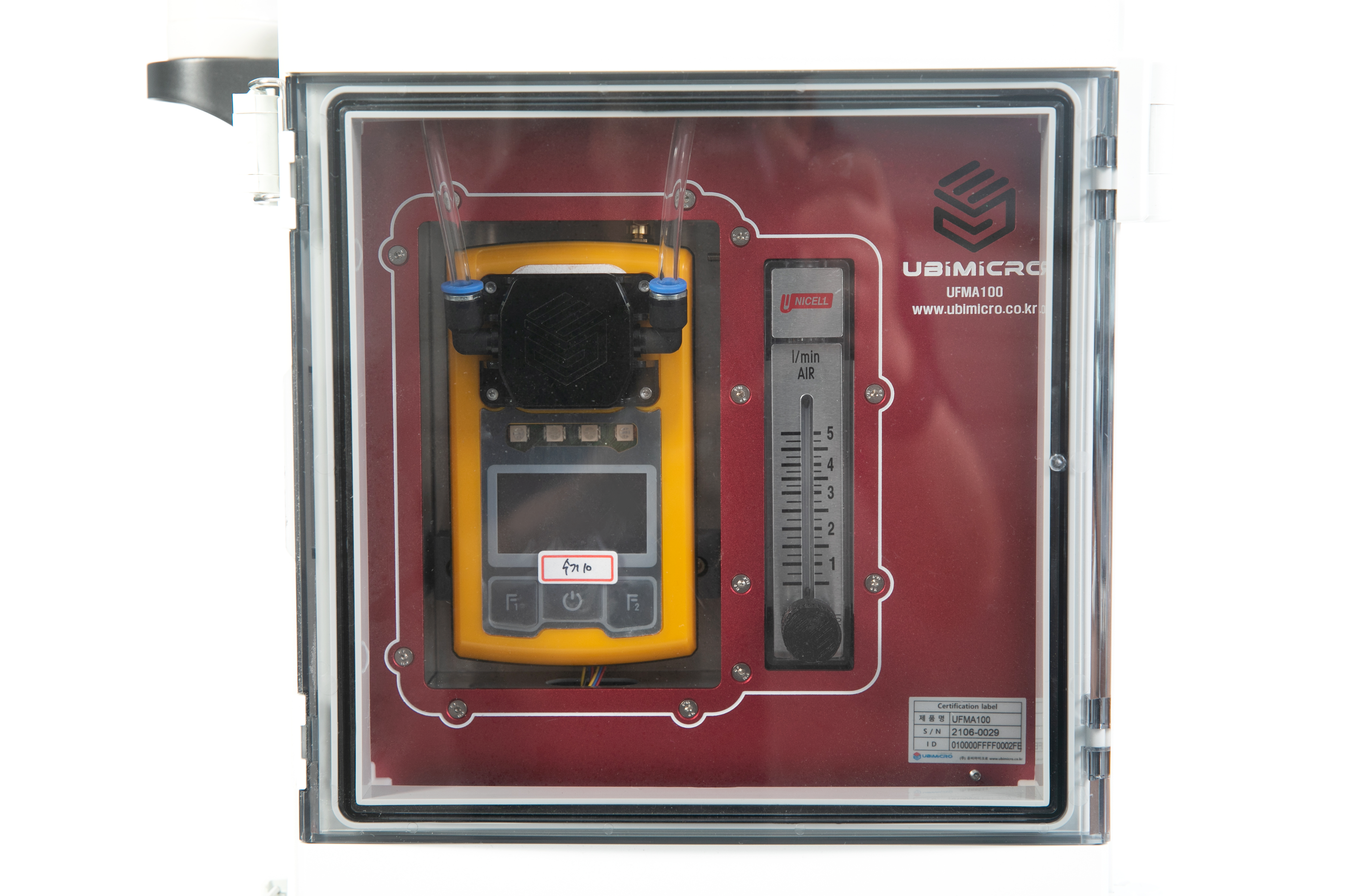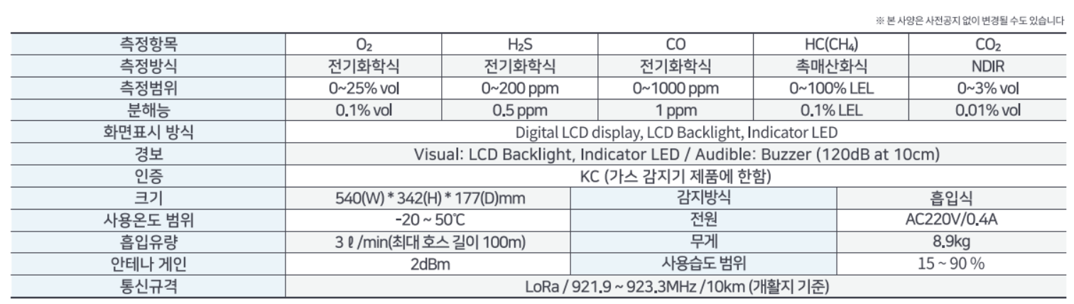 Air hose is installed inside the confined space(internal space) and the gas is sucked in at the site through pump from the outside to allow the gas concentrations to be measured in real time.